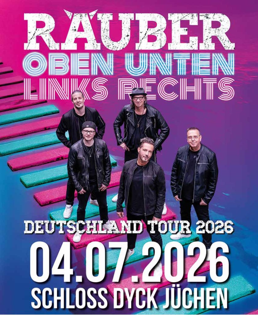 Über zwei Stunden grenzenloses Hör-Vergnügen unter freiem Himmel auf historischem Grund, das sollten sich „Räuber-Fans“ und solche, die es werden wollen, am Abend des 4. Juli 2026 nicht entgehen lassen. Dann hat die bekannte Kult-Band, die im Rhein-Kreis Neuss ihre Wurzeln hat, erneut ihren großen Auftritt vor Schloss Dyck.